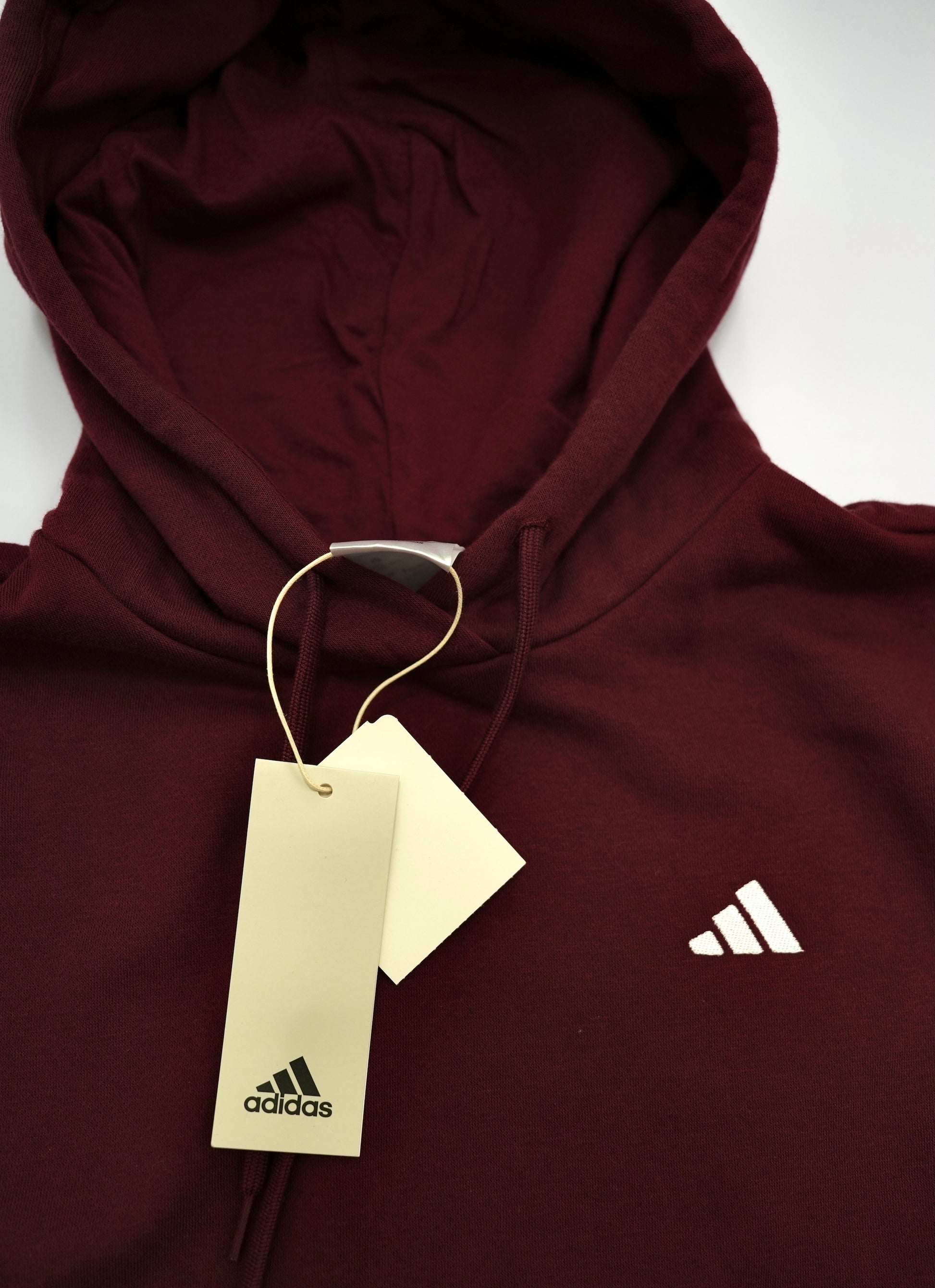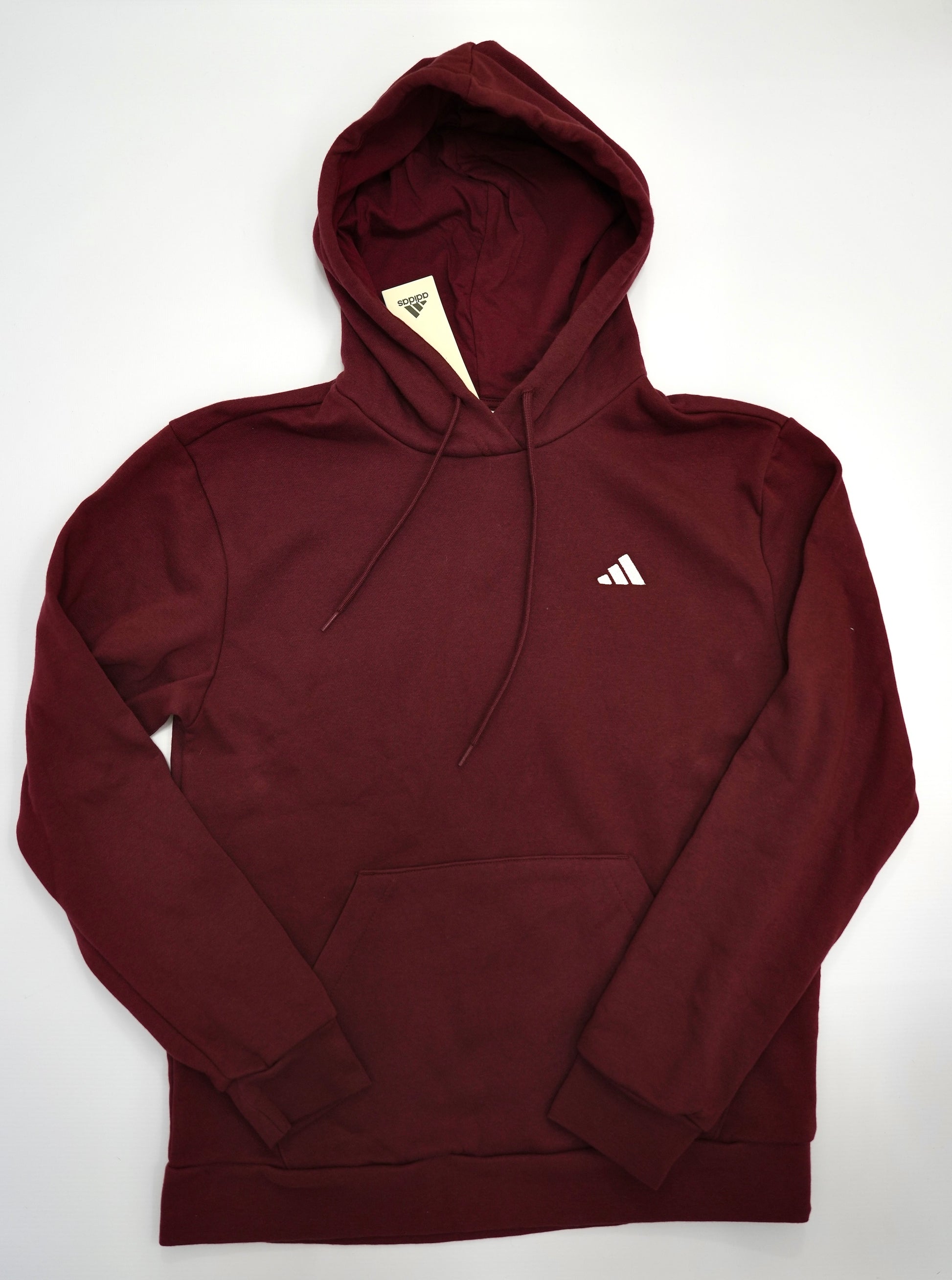 Buzo canguro bordo con pequeño logo en la parte izquierda del pecho y capucha con cordon ajustable. Tiene 50cm de ancho y 64cm de largo