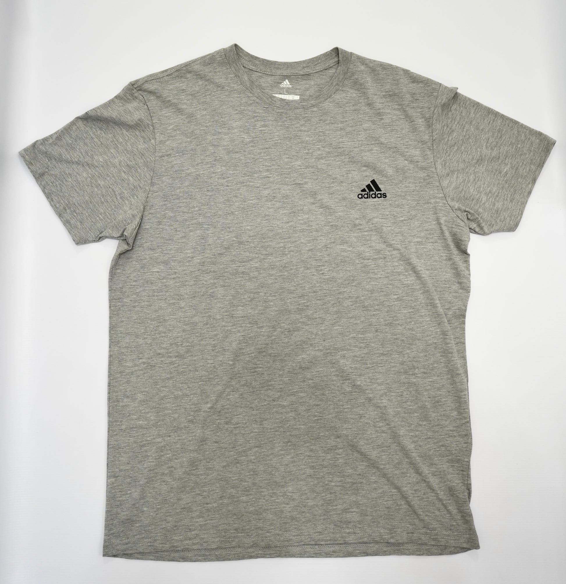 Remera basica gris golf de cuello redondo con pequeño logo en el lado izquierdo del pecho.