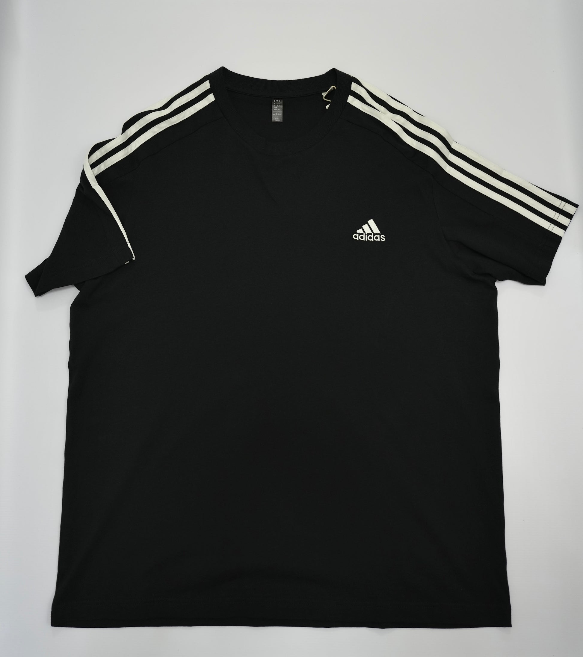Remera basica negra de cuello redondo con las 3 tiras en las mangas.Tiene 65cm de ancho y 77cm de largo.