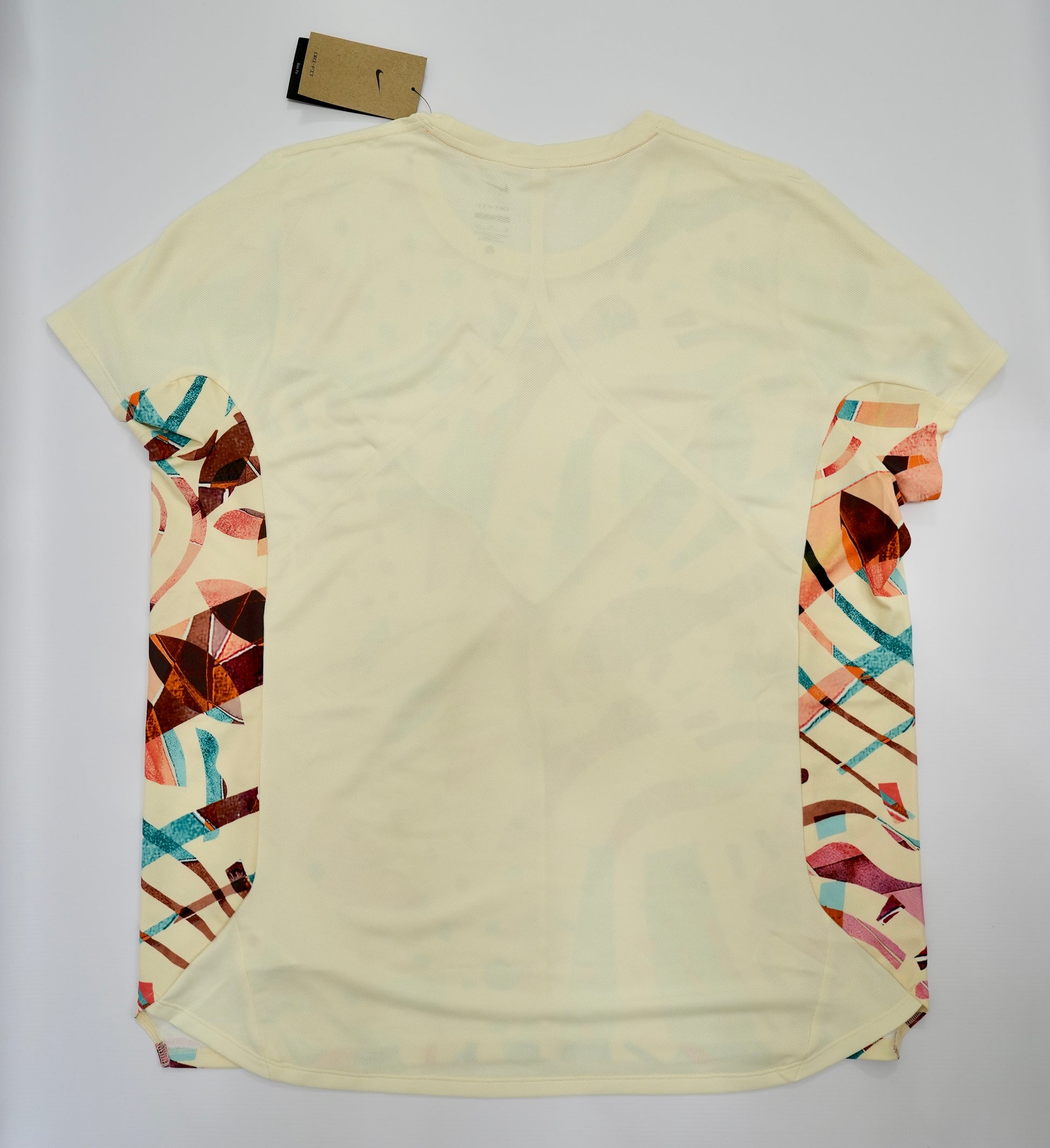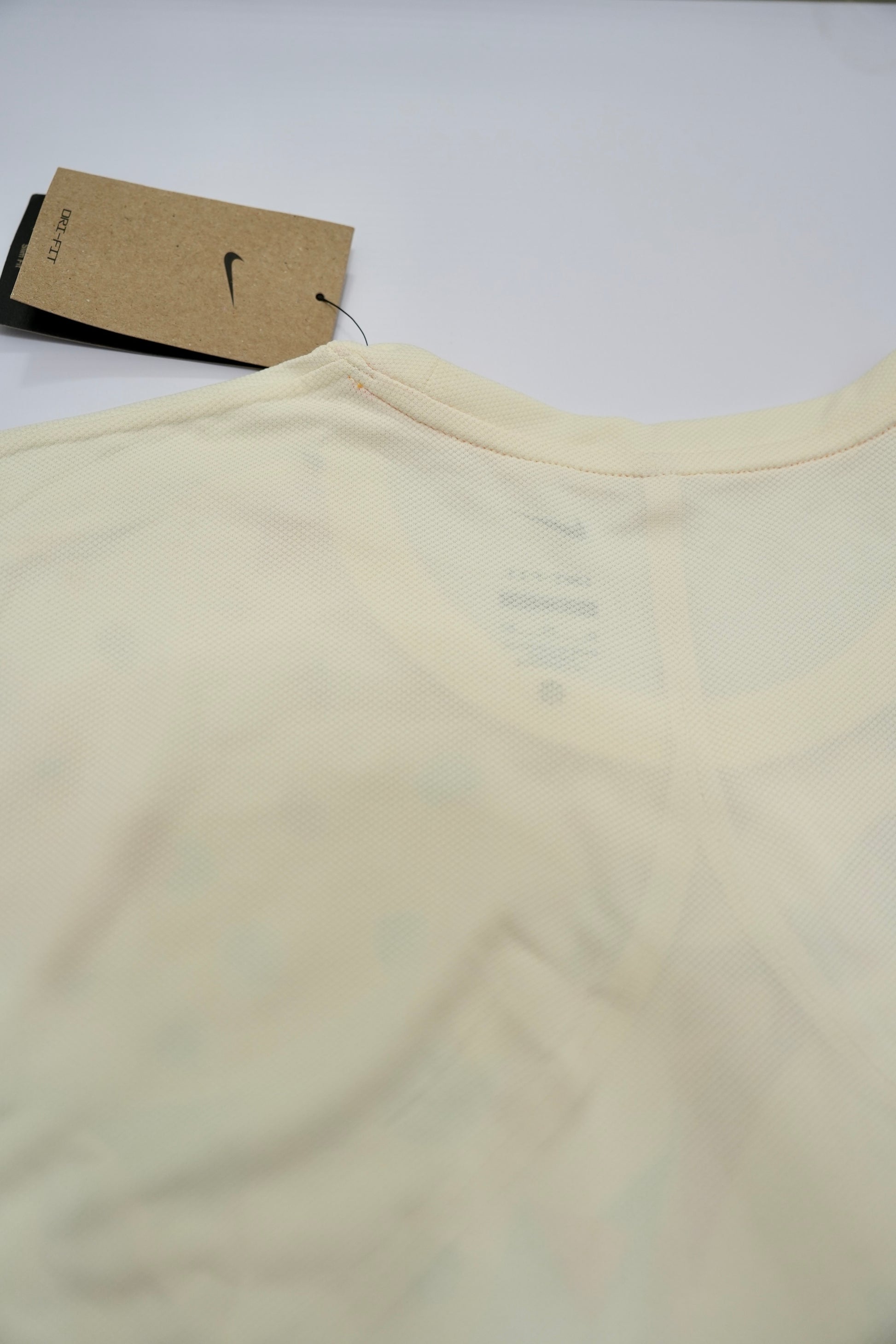 Remera dry-fit beige con estampa de colores de cuello redondo con 62cm de ancho y 75cm de largo.