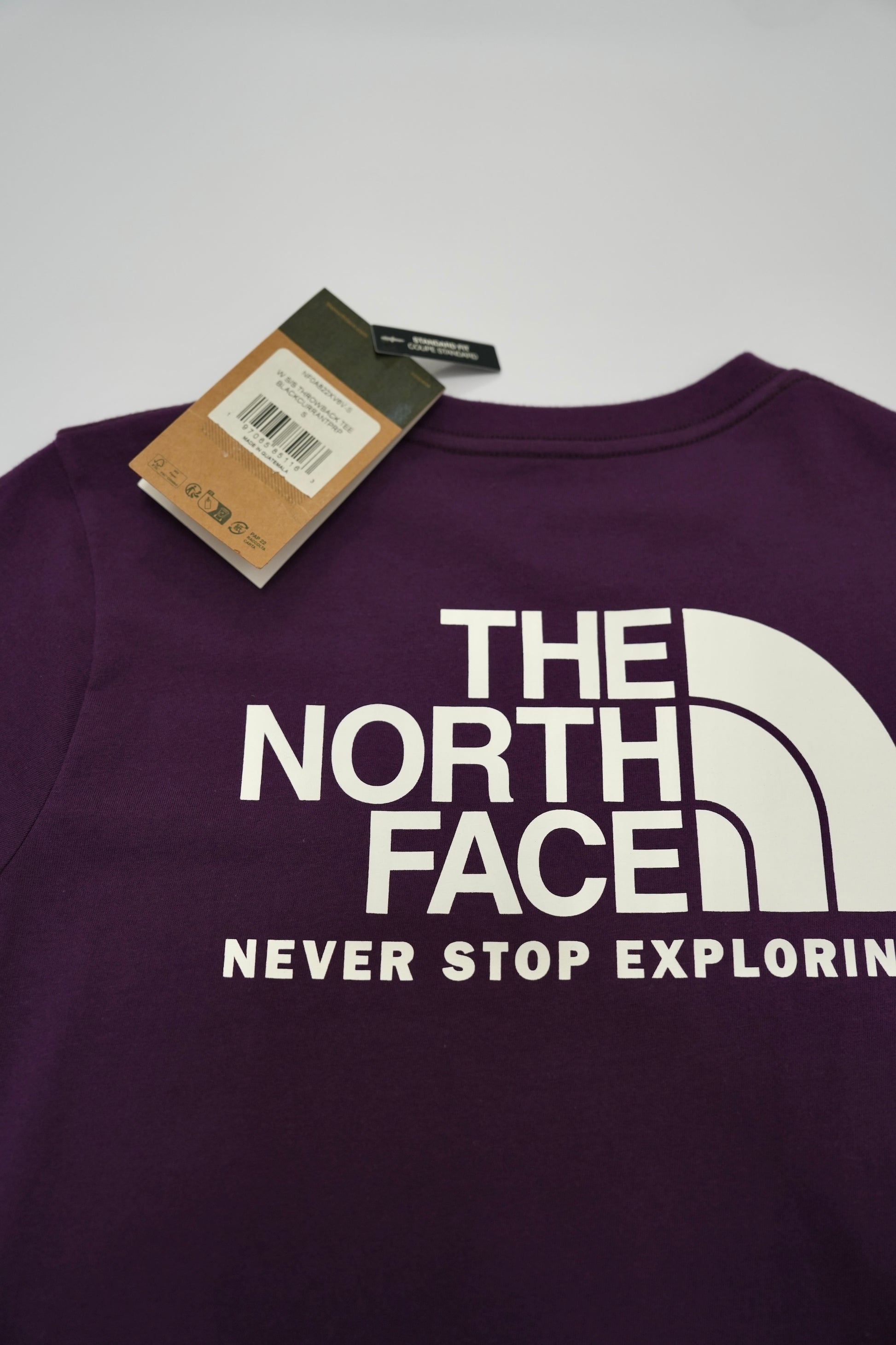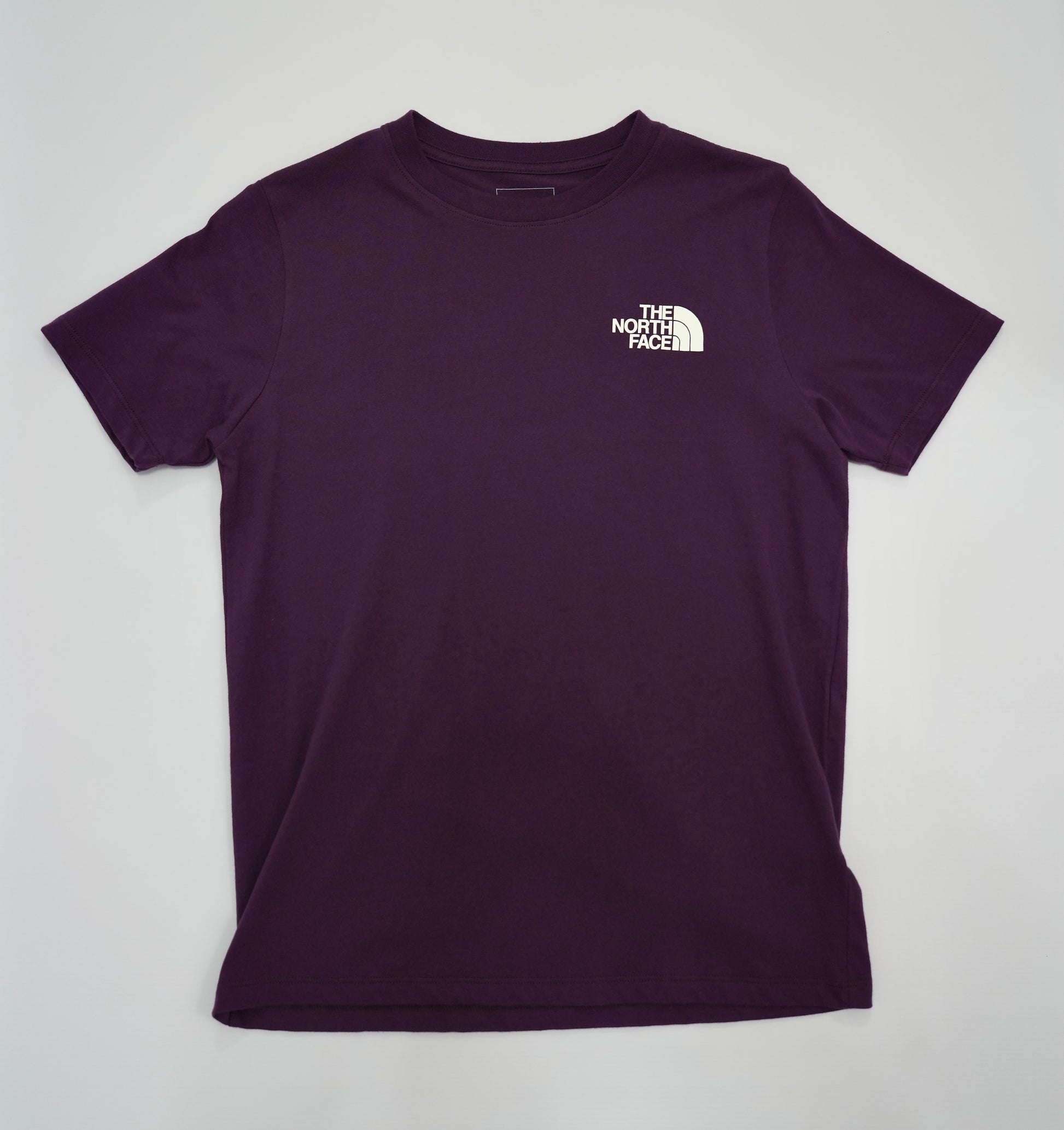 Remera basica violeta de cuello redondo con el logo en la espalda y 50cm de ancho y 75cm de largo